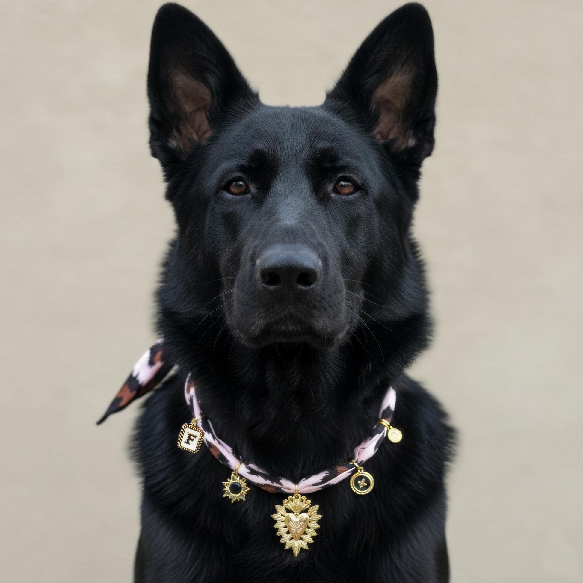 Collier bandana pour chien léopard rose satiné – breloques dorées