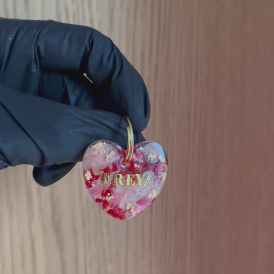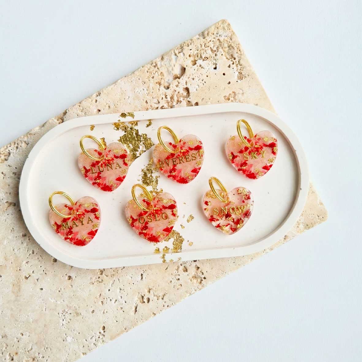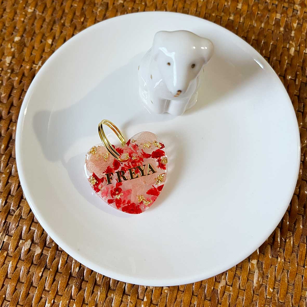 Médaille chien personnalisée – Cœur “Pétales Pourpres”