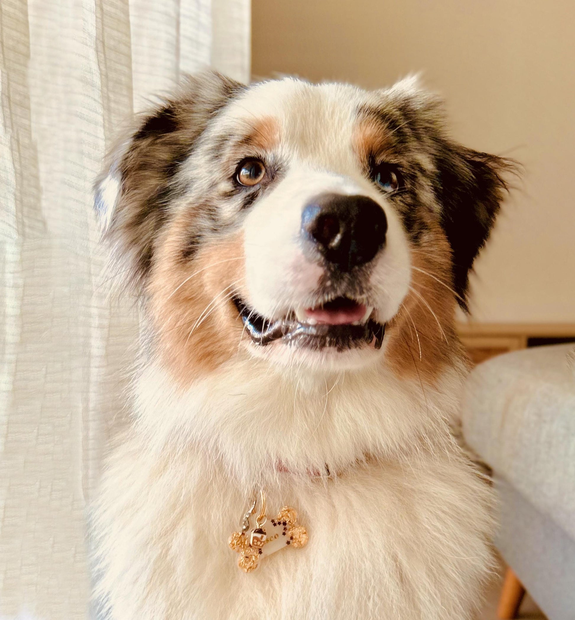 Médaille chien personnalisée – Os “Latte” (fait main en France)
