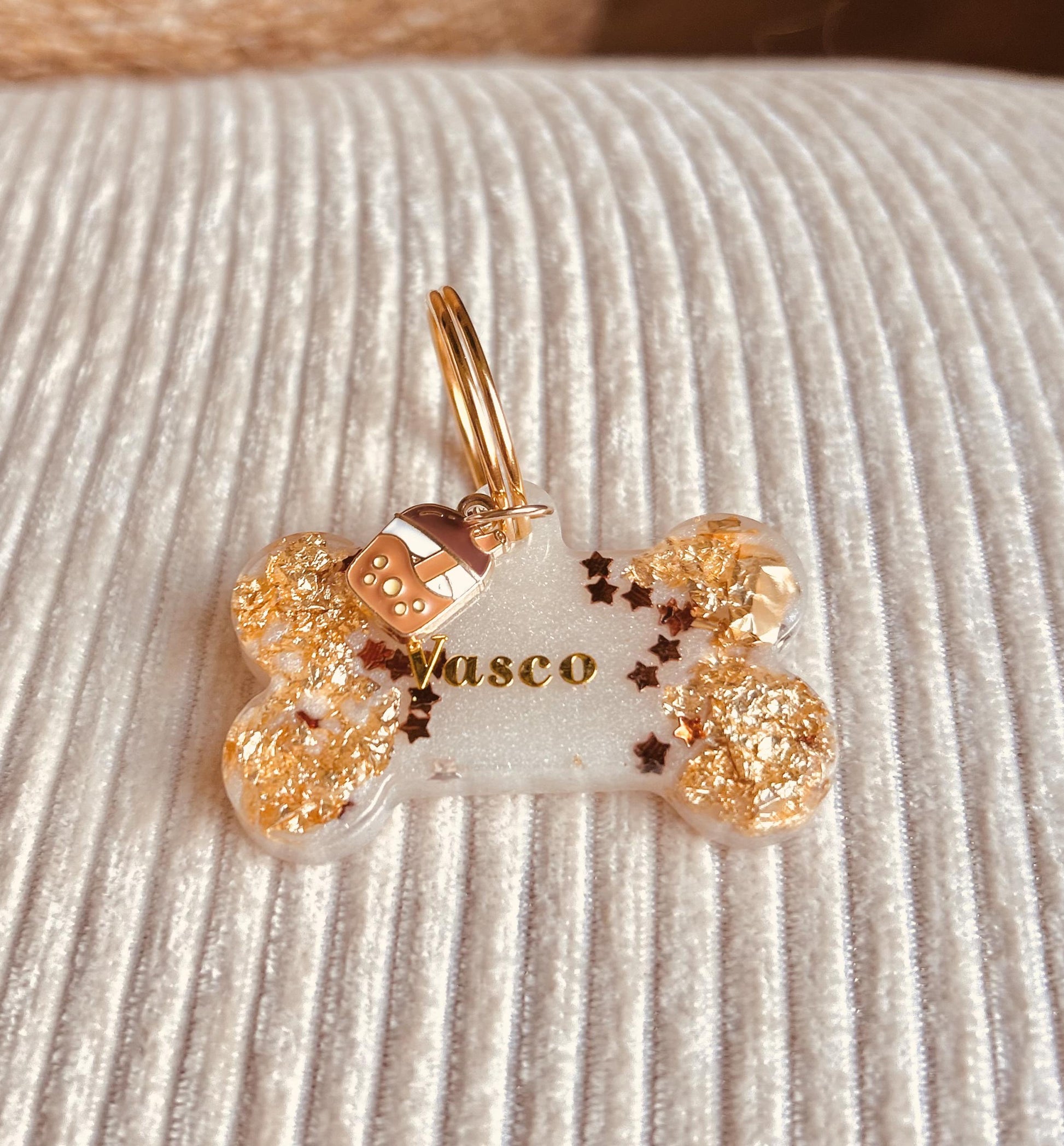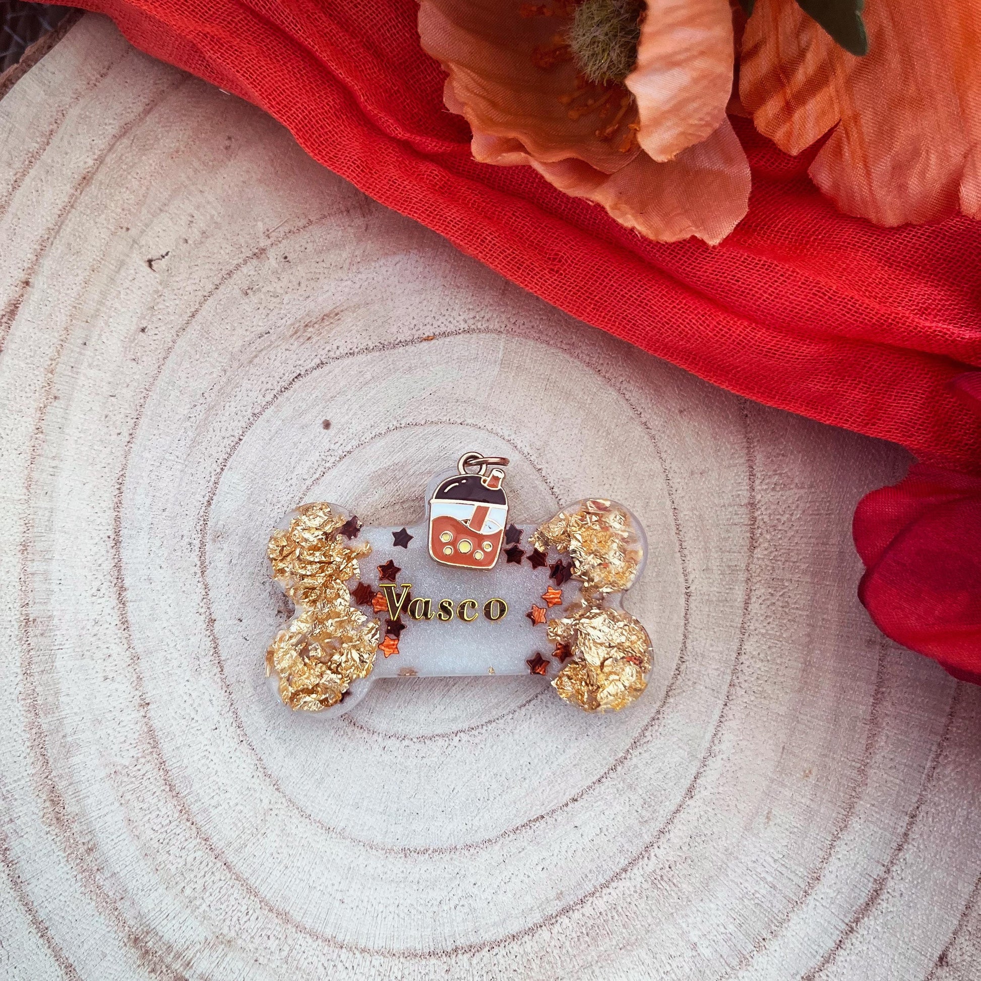 Médaille chien personnalisée en résine époxy – Os “Latte”