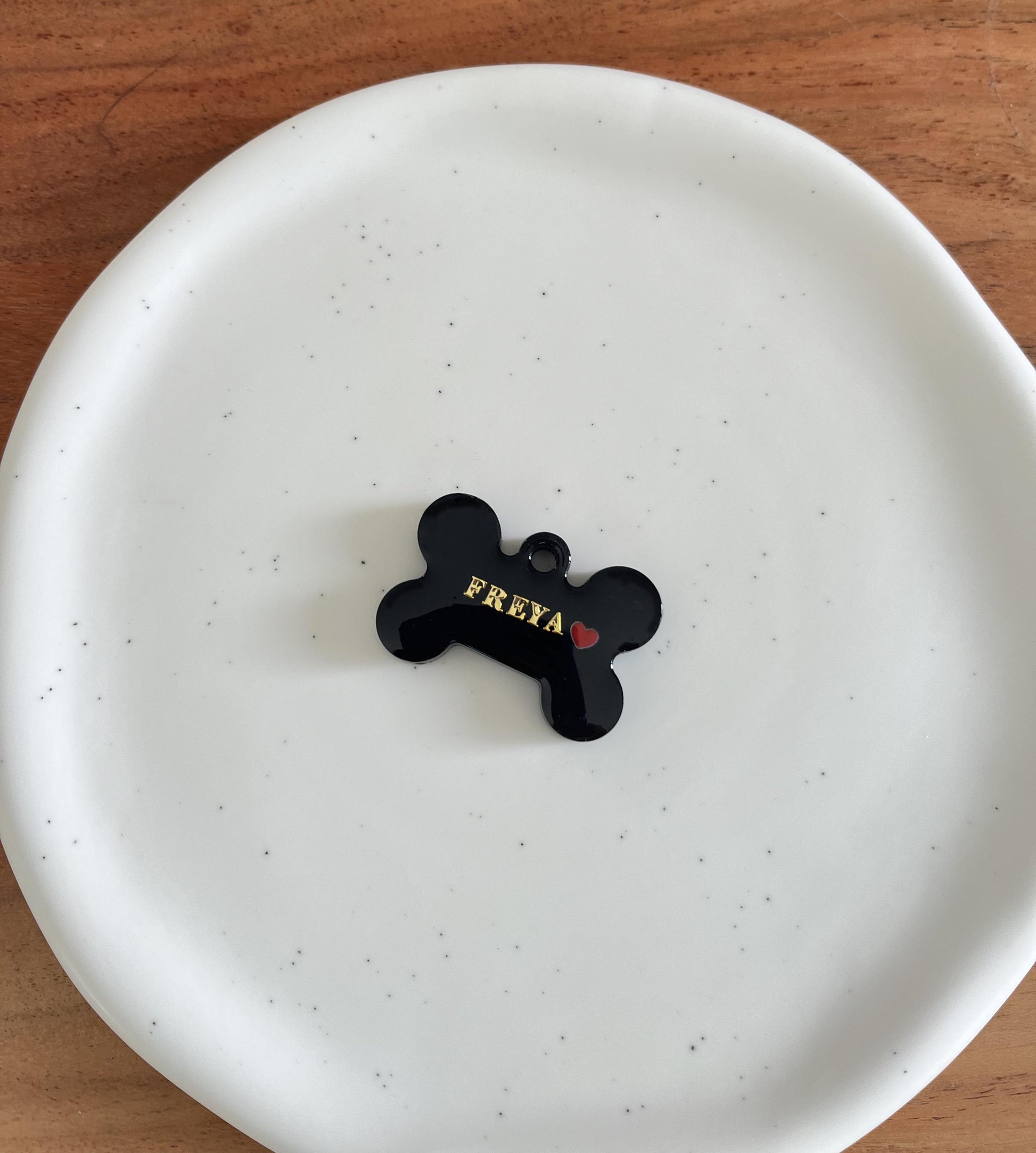 Médaille chien personnalisée en résine – Os Noir Cœur