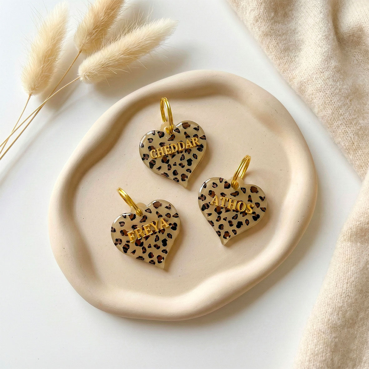 Médaille pour chien personnalisée – Safari Chic ( cœur léopard )